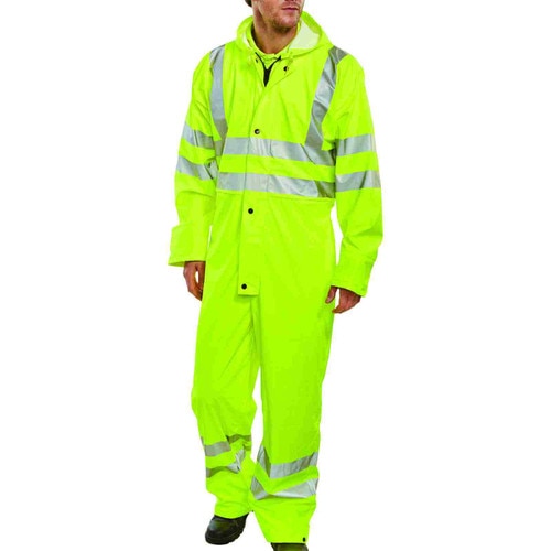 • Manufactured from PU Tricot fabric with welded seams, fully waterproof with concealed hood, with reflective bands