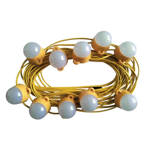 - 22m 10 Lamp LED Festoon Light Kit with 110v 16A Plugs
