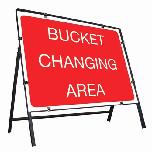 - Metal road sign supplied complete with BUCKET CHANGING AREA in White reflective letters on Red background